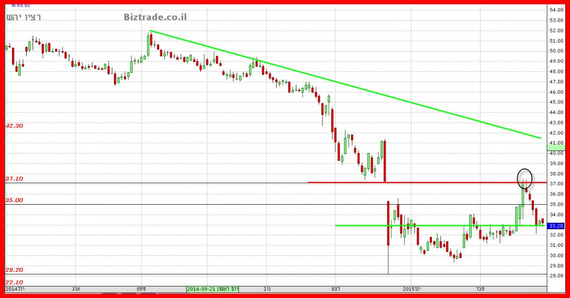 כניסה בטוחה עם המשך עליות יפות רק בפריצת קו זה. בינתיים המחיר התממש חזרה לאזור הידוע 33 ושם הוא נמצא בשלושת ימי המסחר האחרונים. שאין ודאות מוחלטת שקו זה לא ישבר, כאשר הטכני בגרף עדיין שלילי ובמידה וקו זה ישבר, ה-31 יופיע על המסך.