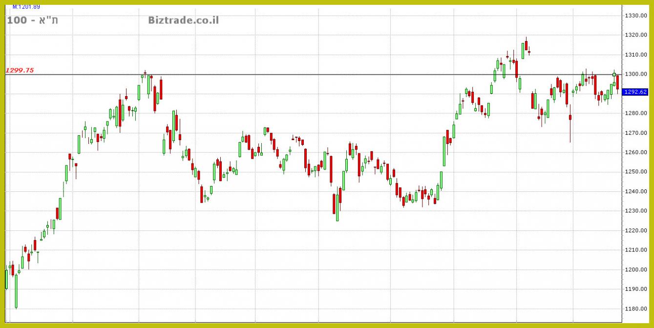 המדד נסחר עם תנועה של כ 30 נק" בחודשיים האחרונים , יתרה מכך מאז השבירה של קו ה 1300 , לא מצליח המדד לפרוץ מעלה חזרה כולל יום חמישי אחרון .