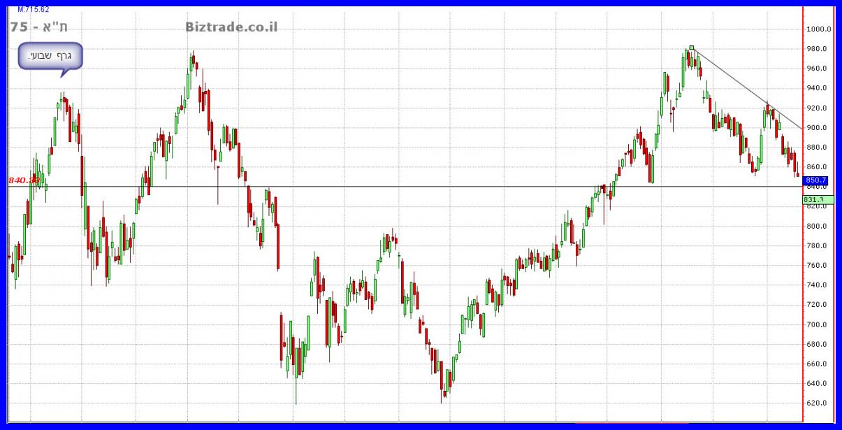 לגבי מדד תא" 75 , נכתב בעיקר שאני מצפה למהלך עולה מתקן אשר יצא לדרך בין ה 850 ל 840 , ואתמול המחיר שובר את קו ה 850 ומגיע לסגירה ב 842.