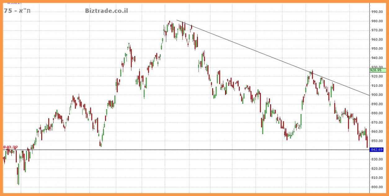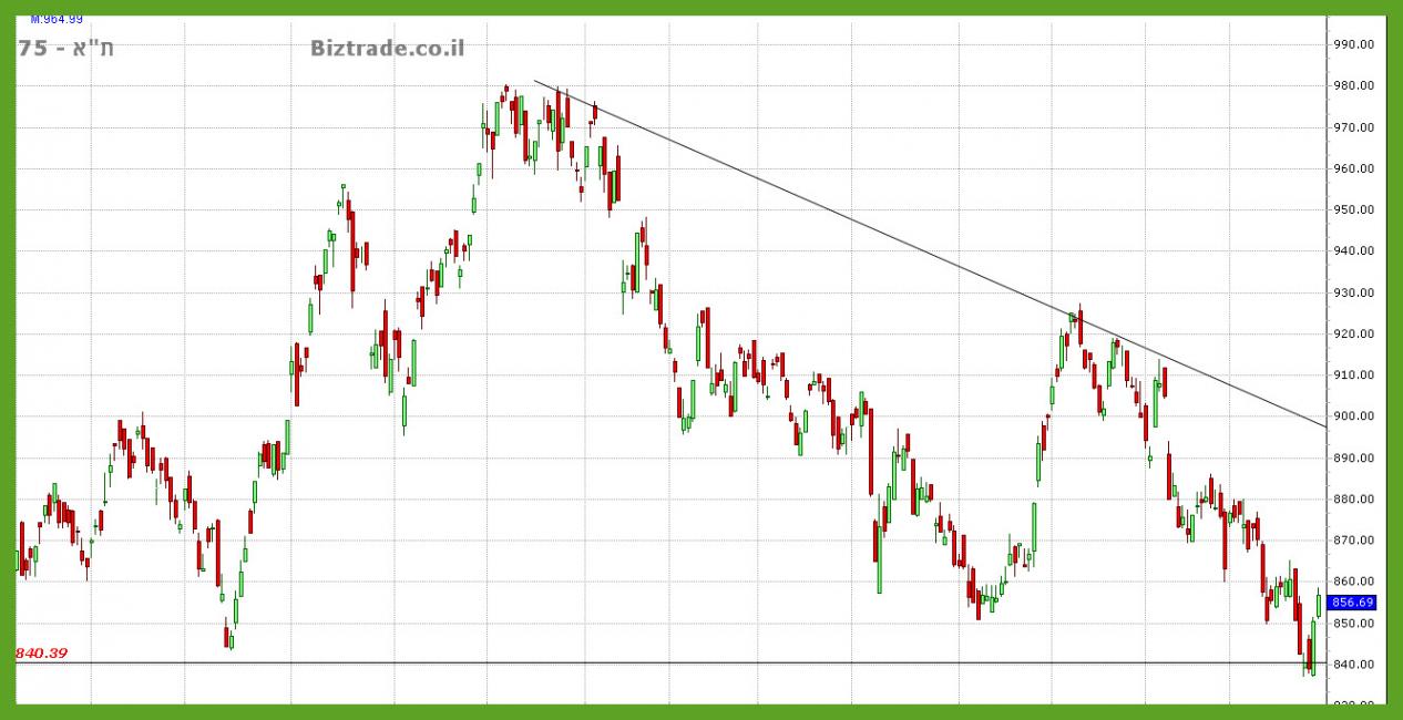 המדד שנמצה במגמת ירידה החל מ אפריל השנה, מגיע בסופ"ש זה לסגירה בפעם השלישית בקו ה 850.
