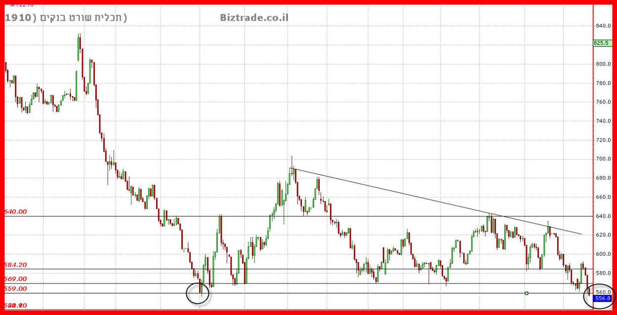 התעודה העוקבת על מדד הבנקים בשורט, מאותתת על כוונות עלייה.