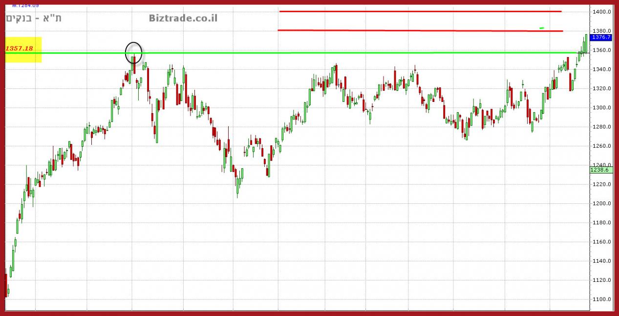 ברגע שמדד הבנקים ישבור את קו ה 1357 , הוא נכנס לשורט !