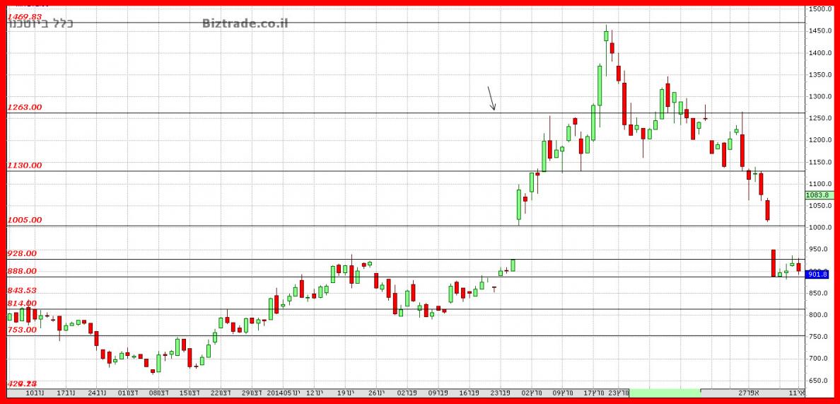 כך שלא ניתן כרגע לצפות למשהו פרט להמשך היחלשות למרות שהמחיר כן יכול להגיע לאזור ה 950 1000.