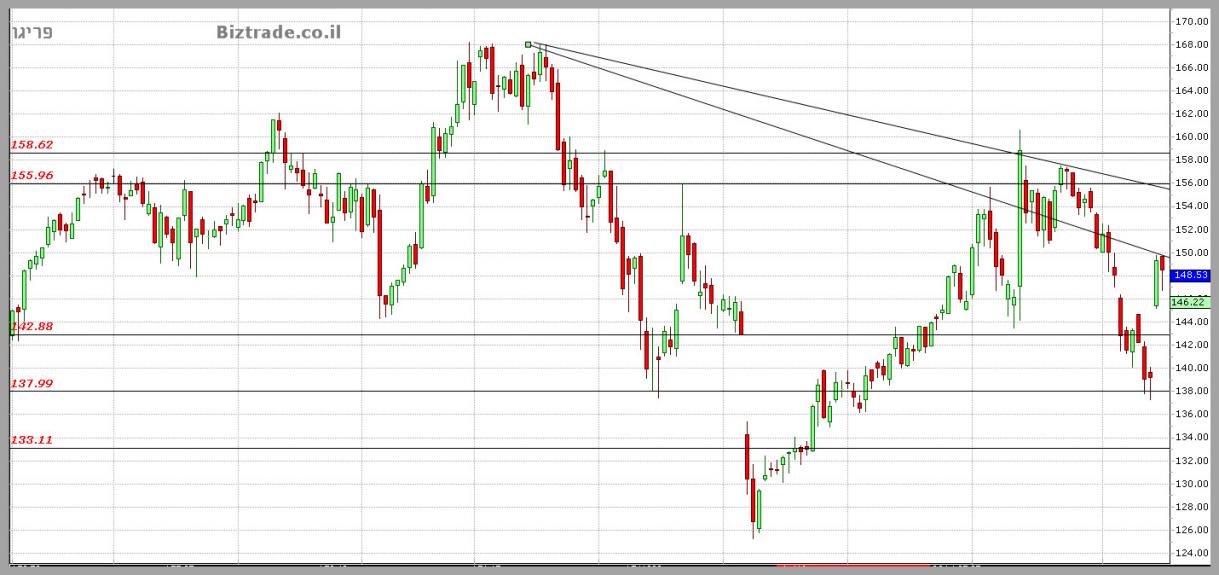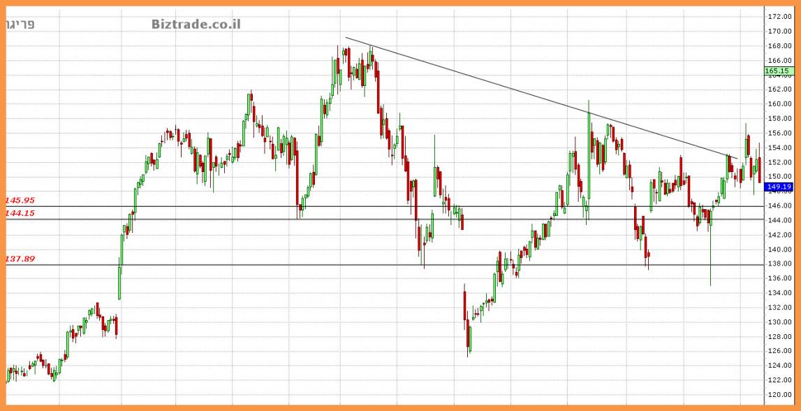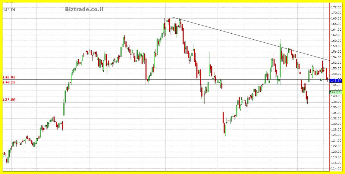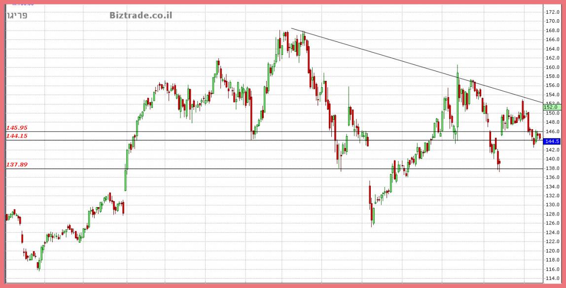 שבירה של ה 144 = המשך ירידות ל 142 – 138.