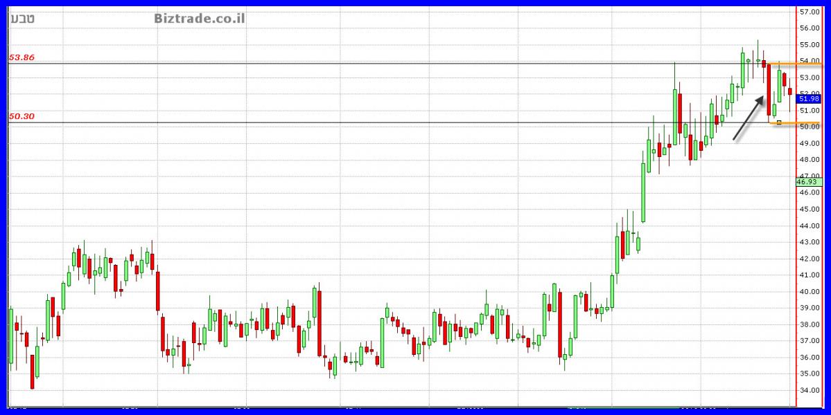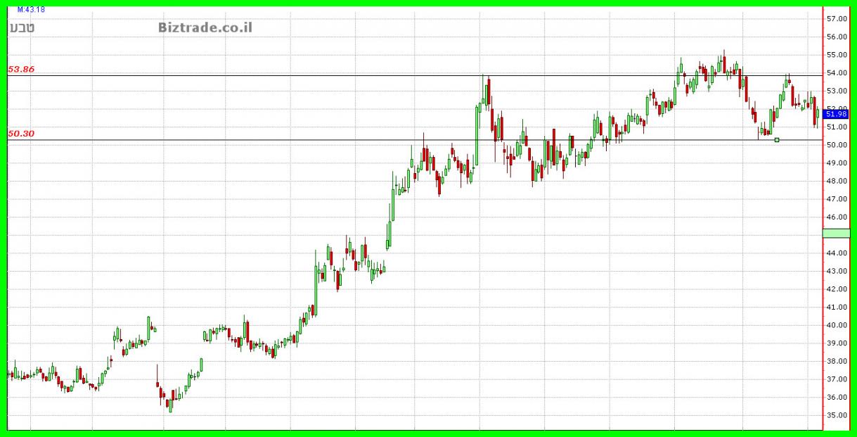 המחיר שובר אתמול את קו ה 52 , וקובע יעד מיידי ל51 עם פוטנציאל גדול לשבירתו.