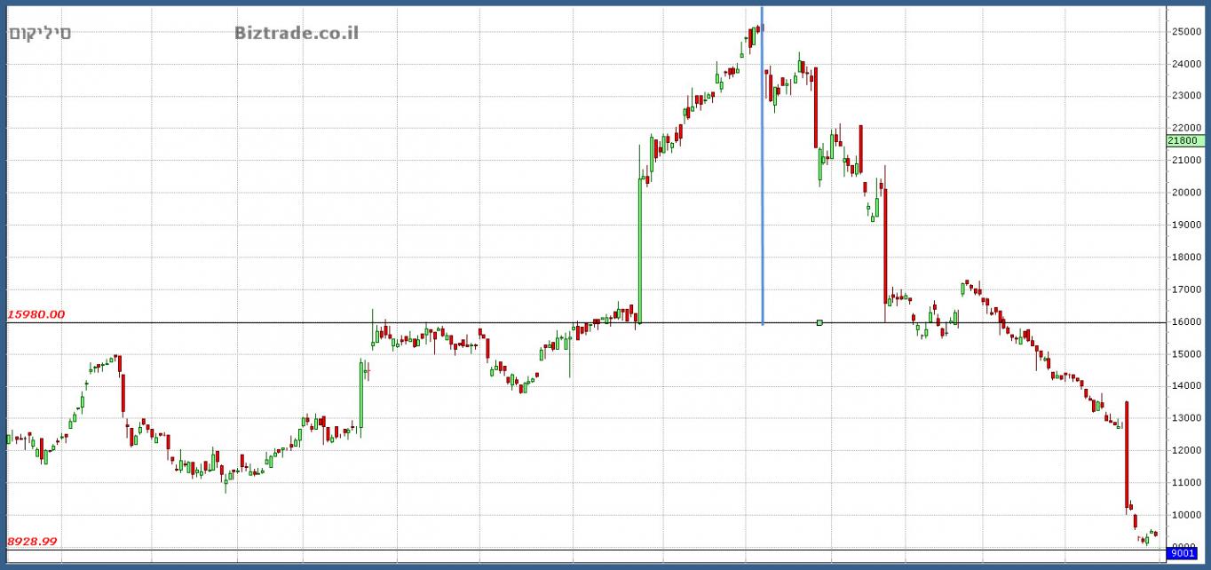ואתמול המחיר ממשיך לרדת לקרבת ה 8000 , והיום שובר אותו , ומגיע לסגירה ב 7785 .