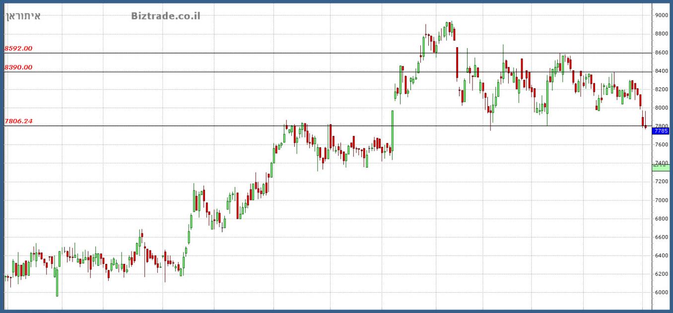 "נכון שהגרף הולך ימינה אבל הליכה זו היא שלילית, ואני צופה שהמחיר ישבור את ה 8000 , ויתכן גם את ה7800.