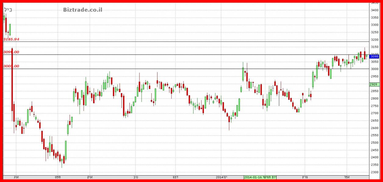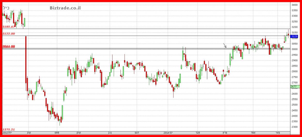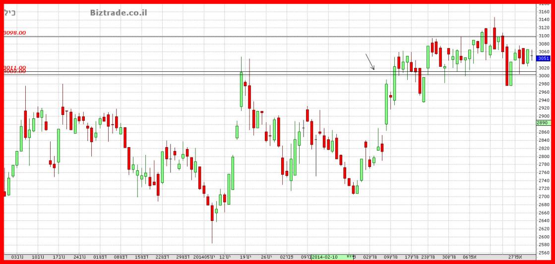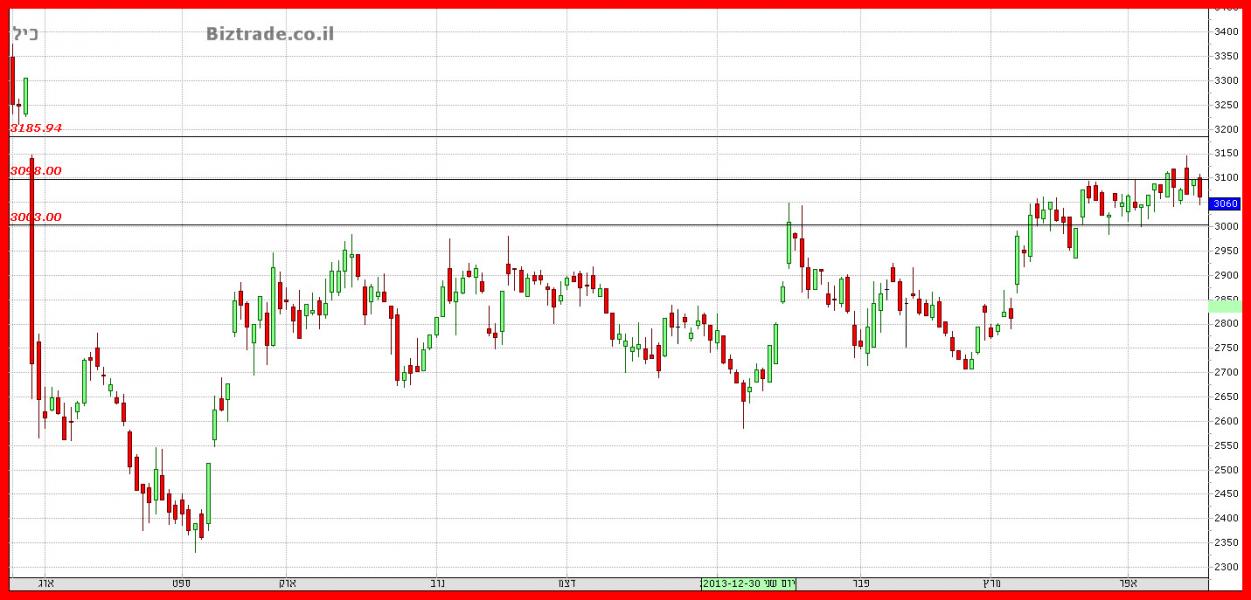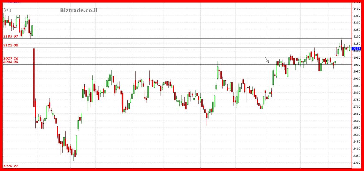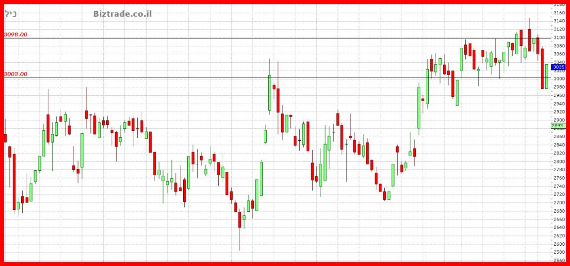 המחיר תקוע בין ה 3000 - 3100 , כאשר הקו ה חשוב ב3050 במרכזו.