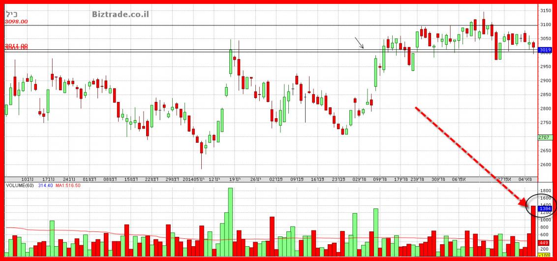 אתמול הוצאתי עדכון בתוך יומי כאשר בחצי הראשון של המסחר הנפח כבר היה גדול מהרגיל, וראו איז נפח שלילי קיבלנו בסופו של יום המסחר, והוא כמובן נפח שלילי, שאולי ידרוש המשכיות מטה, ביום המסחר הבא, למרות שכבר היה אתמול ניסיום לשבור את ה 3000 אתמול .