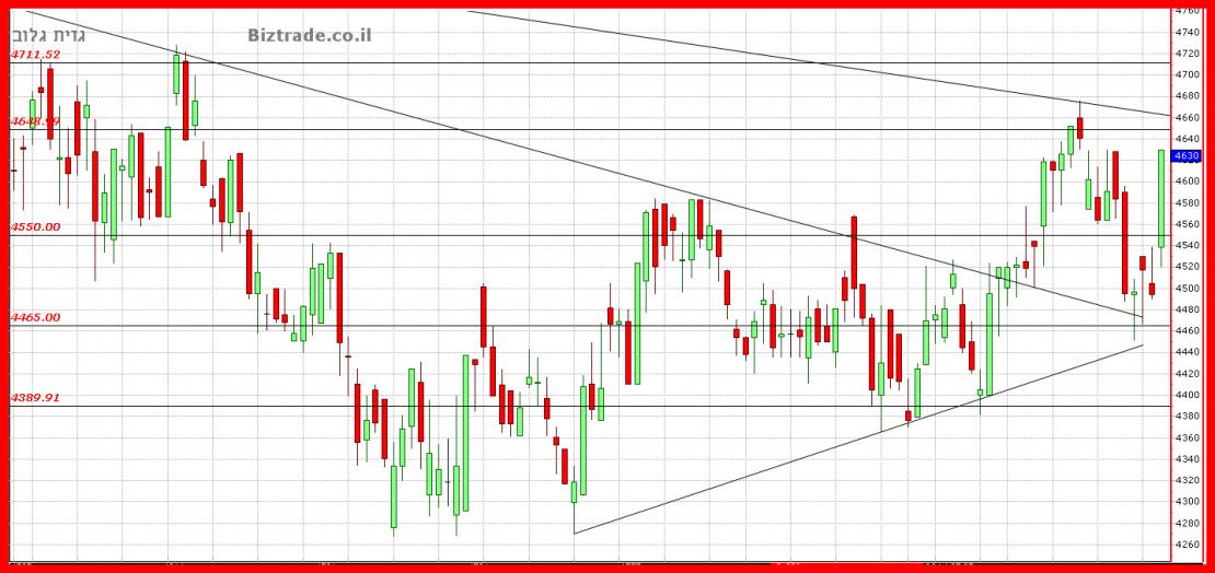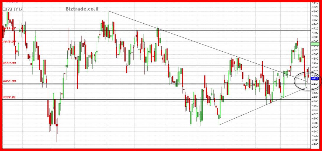 "המשך היחלשות לקראת התמיכה ב 4465 , ושם צריך לבחון אותה שוב. כי בסה"כ לא ניתן לזלזל בקו מגמה עולה טווח קצר שנוגע במסחר של היום , ונמצא מתחת ל 4465."