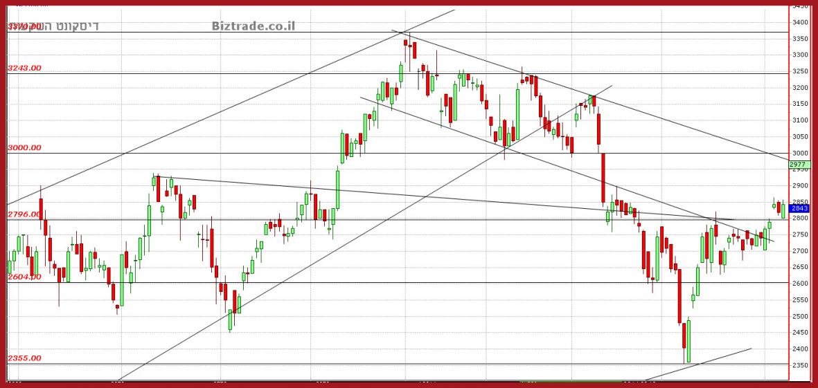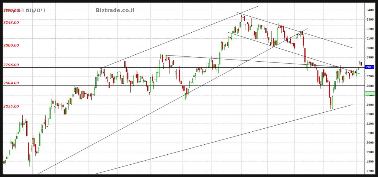 הנר האדום שנוצר אתמול פחות משמעותי, כרגע כי החשיבות היא להחזיק בקו ה 2800 , שזו גם חדירה לתוך קווי התעלה היורדת