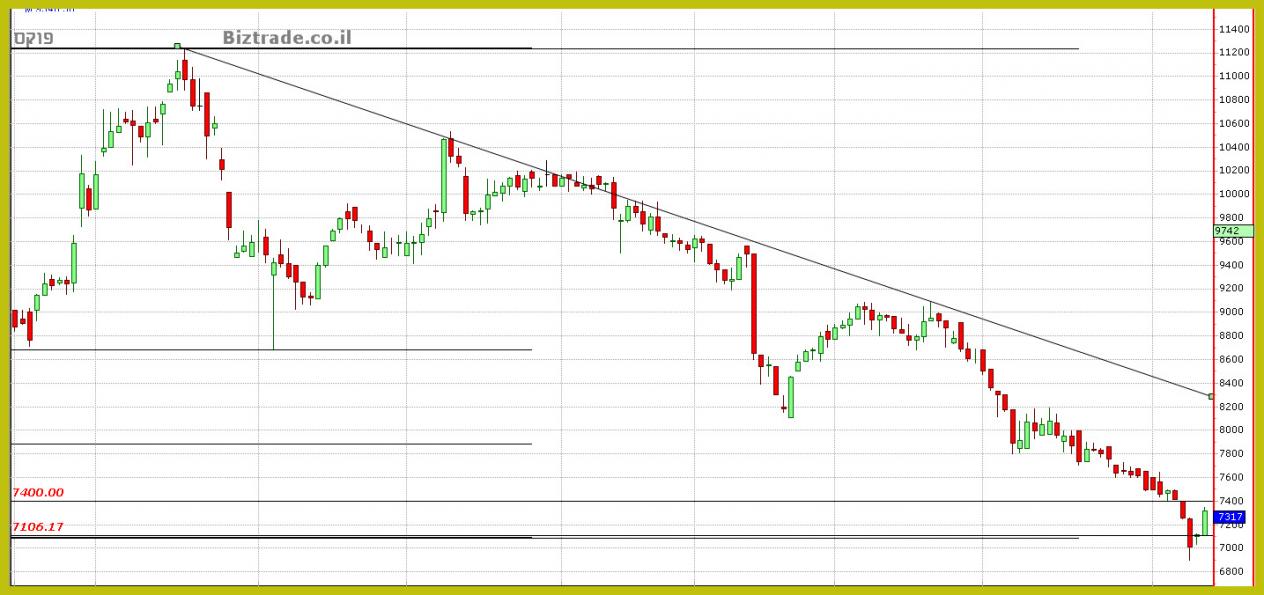 קו ה 7085 - 7100 הם גם תמיכה שבועית חשובה וגם תיקון 38.2% פיבו על כול המהלך העולה.