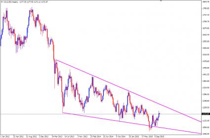 המגמה דובית. נוצרה תחילת מגמה שורית מינורית מתחת לממוצע נע 200 ו-250 ימים. בגרפים בעלי המגמות הארוכות ניתן להבחין שהמגמה השורית מתהפכת כתעלת הבולינגר משנה כיוון לשער אופטימאלי של 1347 דולר.