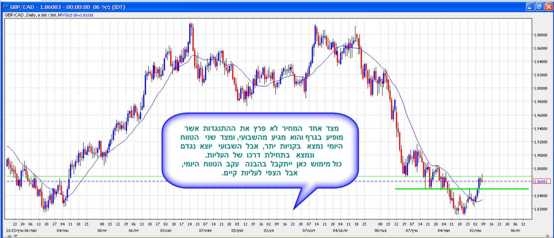 שים לב שהצמד כבר נסחר מתחת לפיבוט.
