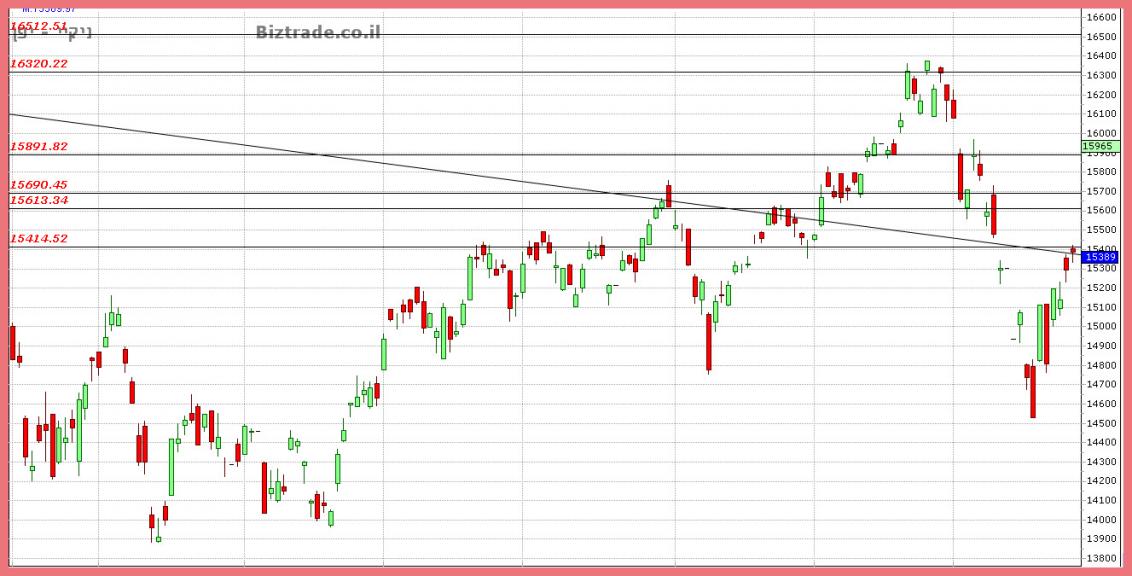 המדד פותח אתמול בגפ מעלה מעל צומת הקווים הבעייתים, שב 15400,