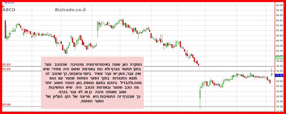 מסתכלת על הגרף של ABCO, גם פה יש נר שלא רואים כל יום אך כאן הוא מגיע אחרי מהלך יורד.