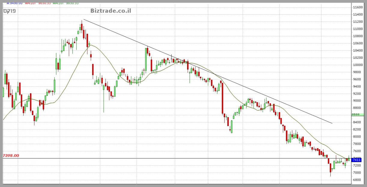 גם היום המחיר מנסה לפרוץ את ה7400 , ובינתיים מחזיק מעמד,