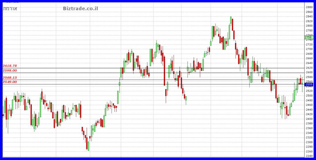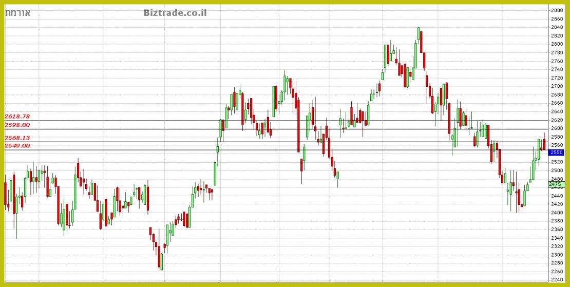 התמונה הגרפית לא השתנתה ,לאחר הסגירה , ולאחר העדכון ה תוך יומי., כולל דעתי הטכנית , גרף זה בדרך מטה. לתיקון יורד נוסף , כאשר פריצת ה 2560 יכולה לבטל זאת.