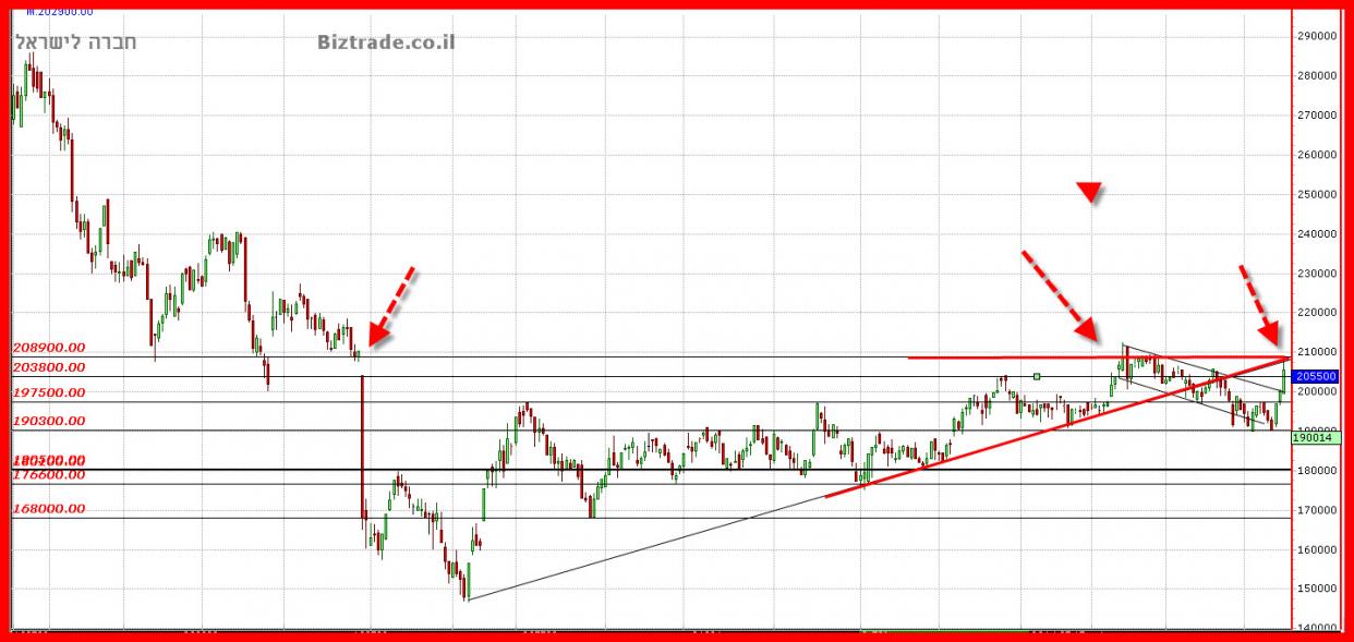 שבירת ה 200000 = גם ה 197400 צפוי להישבר.