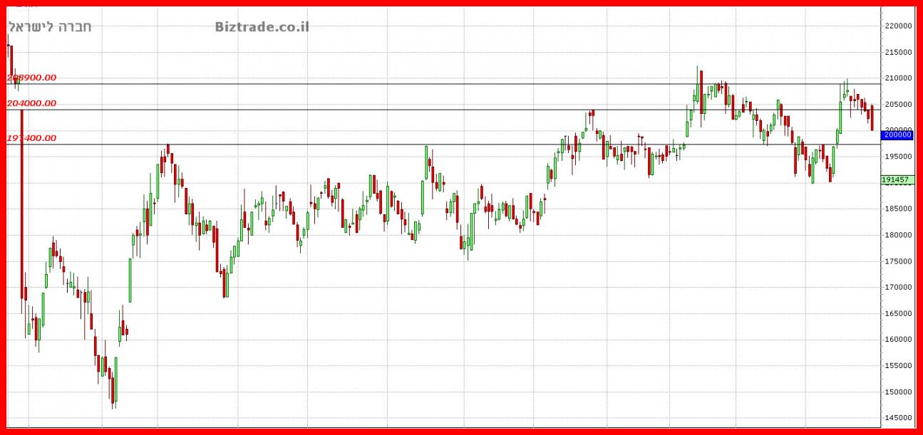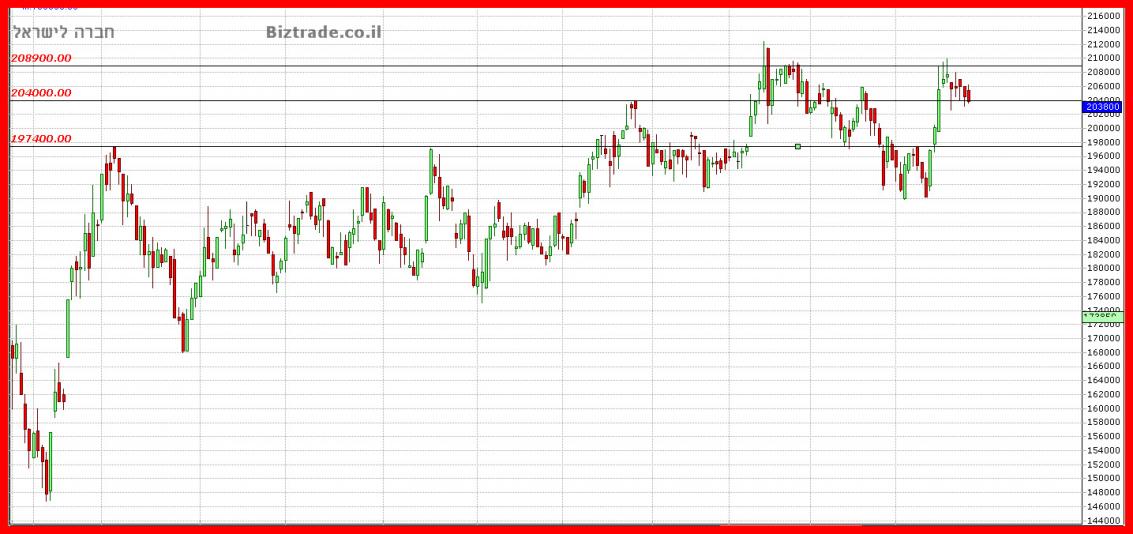 כניסת מוכרים זו , מדאיגה להמשך , ומראה שהם כאן , כך שסגירה שבועית מתחת ל 204000 , משאירה את הגרף חלש להמשך .
