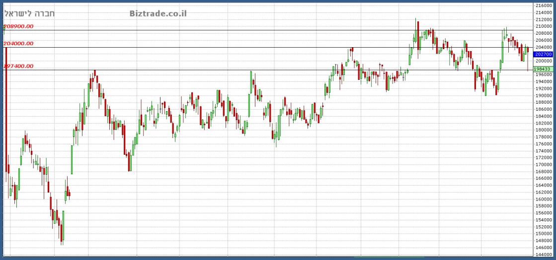 הירידה הייתה לתמיכה החשובה ב 197400 , וחזרה לסגירה שבועית ב 202700.