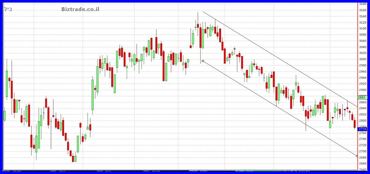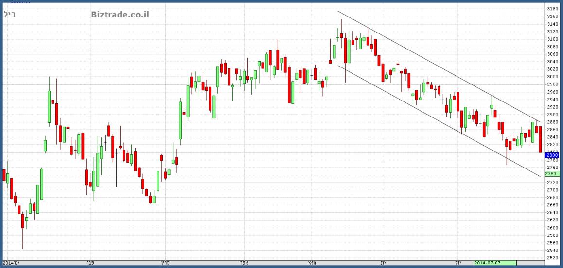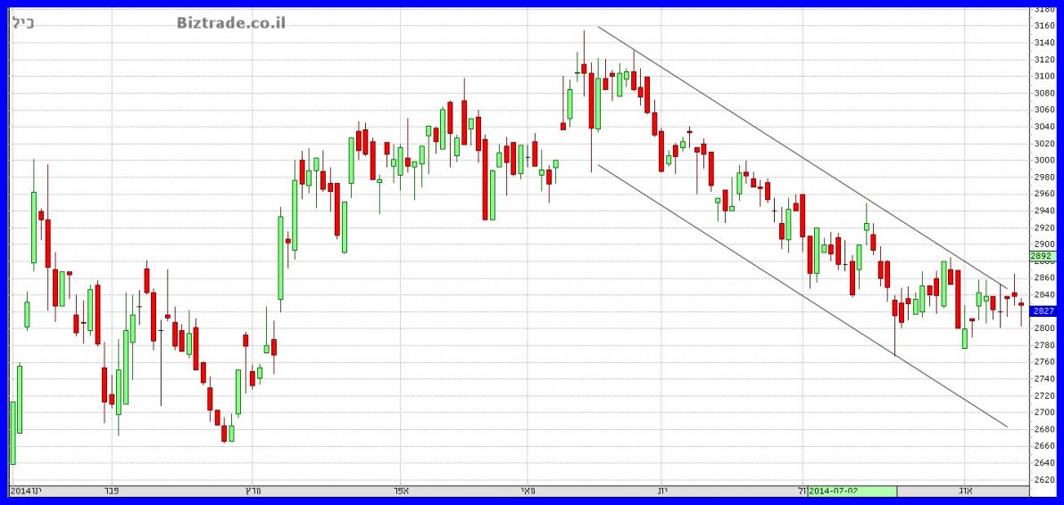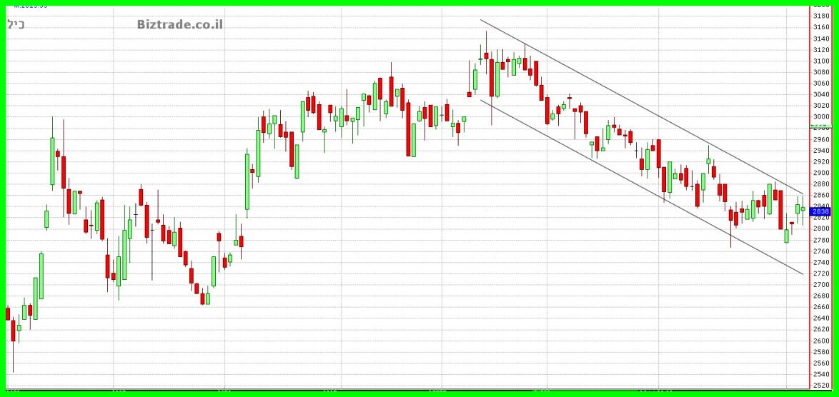 כול עוד המחיר נמצא בתוך התעלה היורדת הצפי ממנו הוא המשך ירידות.