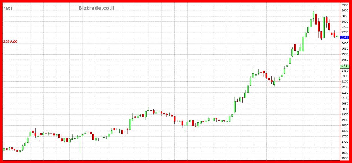 המחיר עדיין נסחר ללא כול עצמה מצד הקונים, אבל החשיבות הטכנית שכבר צוינה היא שמירה על קו 2600.
