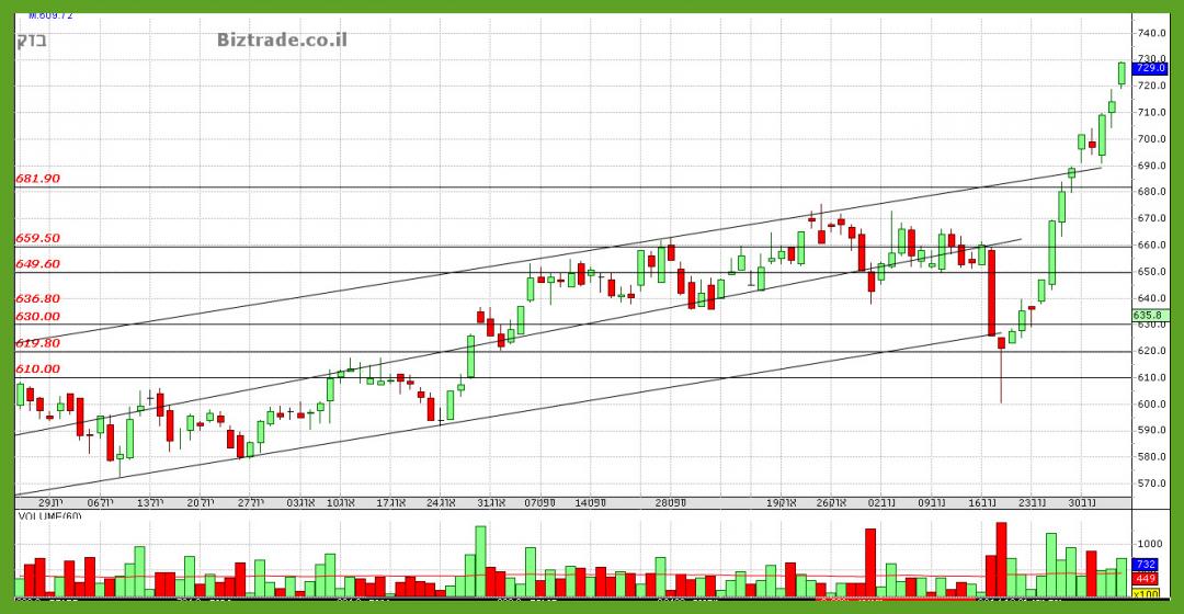 אתמול כבר ניסו לשבור את ה 700 אבל הקונים חזרו ומהר , והיום ניסיון זה ממשיך, כאשר כתבתי מראש , ש שבירה כאן הוא צפי טכני.
