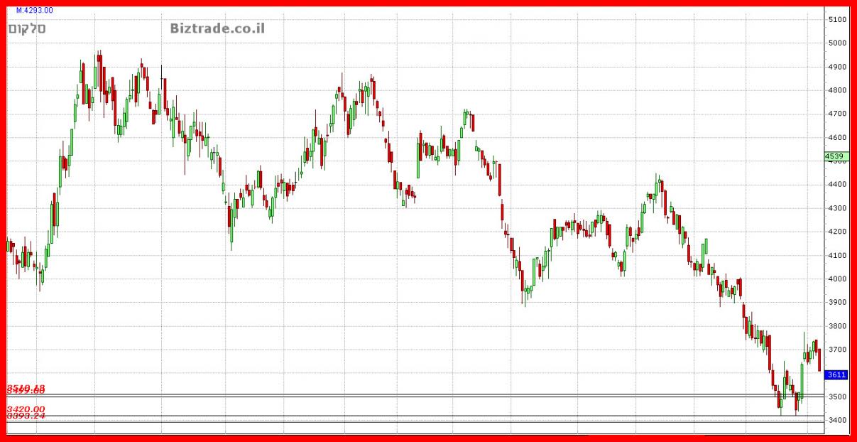 המחיר יוצר תחתית משולשלת על קו ה 3420 , וכאן הוא מנסה לבלום , כאשר המחיר מצליח בסוף שבוע זה להתרומם וגם לפרוץ את ה 3500.