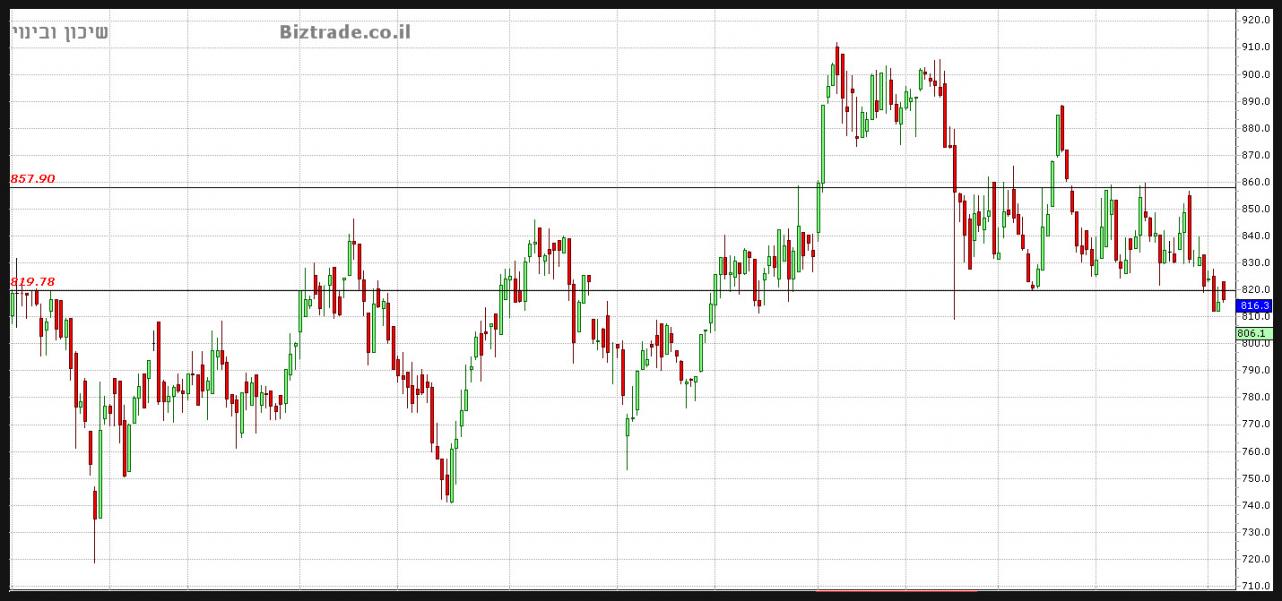 המחיר נשמר מאוד לא לרדת יותר מטה מה 810 , כך שהגרף הצליח להפוך מצב חלש למצב סטטי , ובכך העליות כבר יכולות לחזור החל מיום המסחר הבא , כאשר במידה וקו ה 820 ייפרץ הצפי יהיה להגיע ל 860.