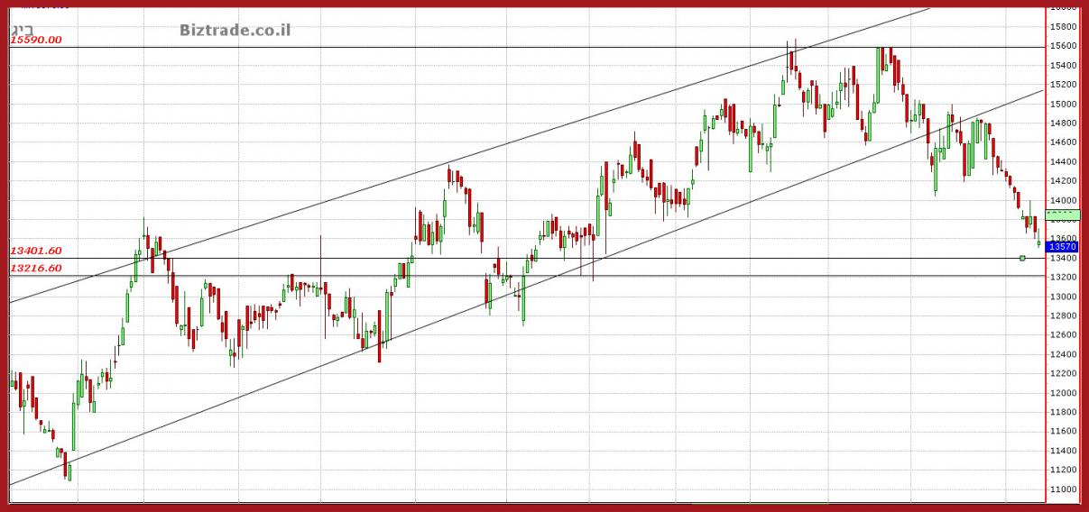את התעלה העולה היא מזמן שברה , והמחיר מנסה ליצור תמיכה עם בלימה בין ה 13400 -- 13600