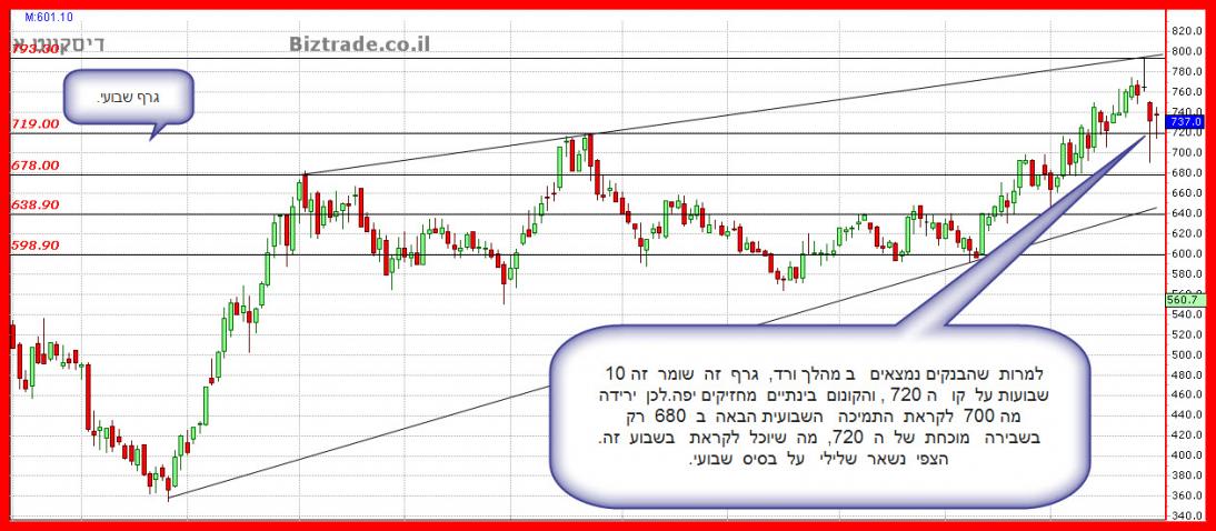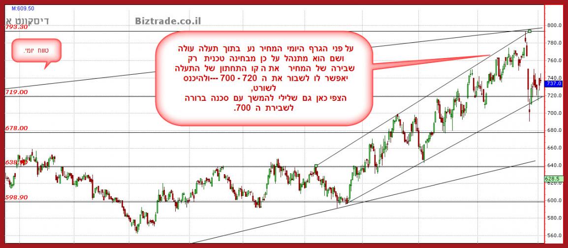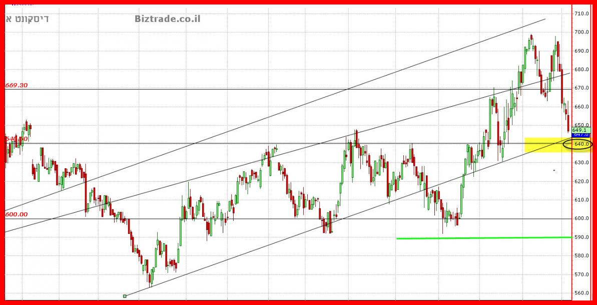 הסיום היום של גרףדיסקונט , שהיה חיובי יפה במשך היום ו בהמשך הפך לאדום כהה, יוצר הזהרה טכנית ברורה שמסכנת את שבירת ה 640 !