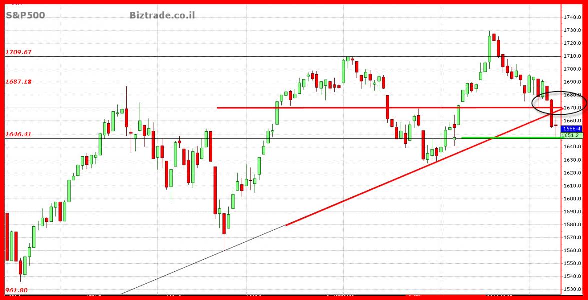 אותו קו מגמה שנשבר נמצא כרגע ב 1670 , ופריצתו מעלה תציין במפורש שהשווקים הולכים ונרגעים בארה"ב למרות הקושי הפונד.