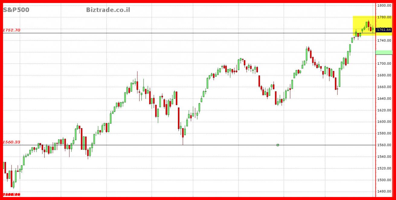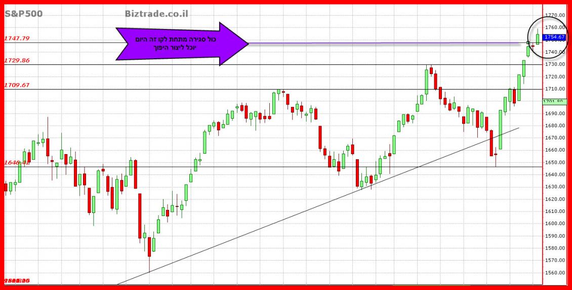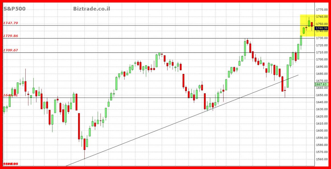 כול סגירה היום במדד ה S&P, מתחת ל 1748 , יוכל ליצור מצב גרפי המציין היפוך מטה.