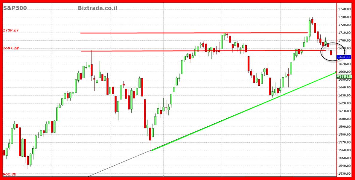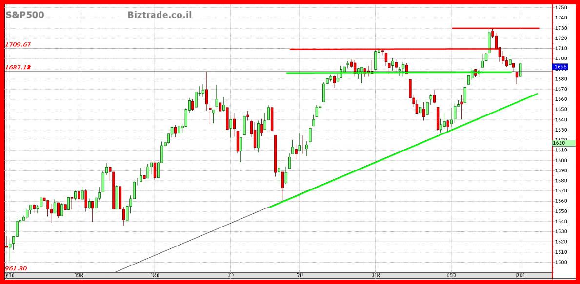 האווירה הכללית מאוד נפיצה ! ויש לקחת בחשבון בכול החלטה, הסנופי היה בדרכו ל 1680 , וביצע פרסה מטה עקב האווירה , ועל כן גם בארה"ב לא ביצעו את התיקונים במלואם כולל היורד הקודם והעולה הקודם, ומצב הגרף הוא כזה שהוא מציג שני שיאים יורדים מה שמחזק את רצונו של הגרף להמשיך לרדת , אבל שוב עקב פונדמנטלי,שהוא ההודעה של אובמה אתמול שאין "החלטה ", זה בהחלט יכול לשנות את הכיוון.
