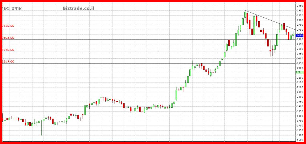 המחיר לא יורד אתמול מקו ה2600 , ובכך נשאר תקוע כרגע בין ה 2600 -- 2700,