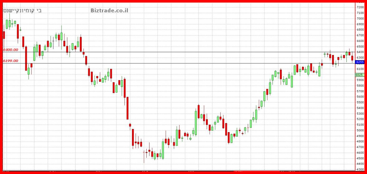 בסה"כ המחיר תקוע ב 11 ימי מסחר האחרונים , כאשר ה 6400 ל נותן לעלות, ואילו ה 6200 , נשמר על ידי הקונים.