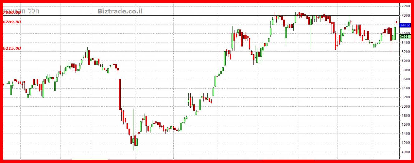 1- 6800--- 6300 ( שאתמול הוא שוב נגע ב 6800 , ונכנסו מוכרים על פי הצל העליון של הנר היומי ).