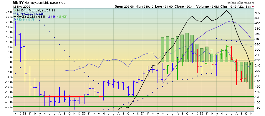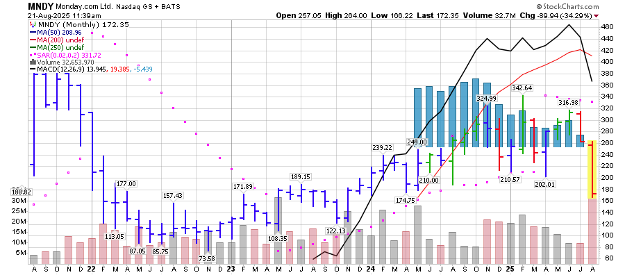 בניתוח הגרף השבועי של מניית MNDY, זוהתה רמת תמיכה מרכזית ומשמעותית: