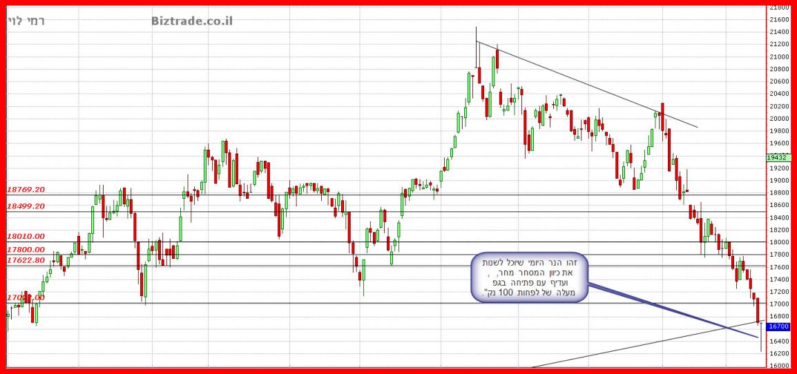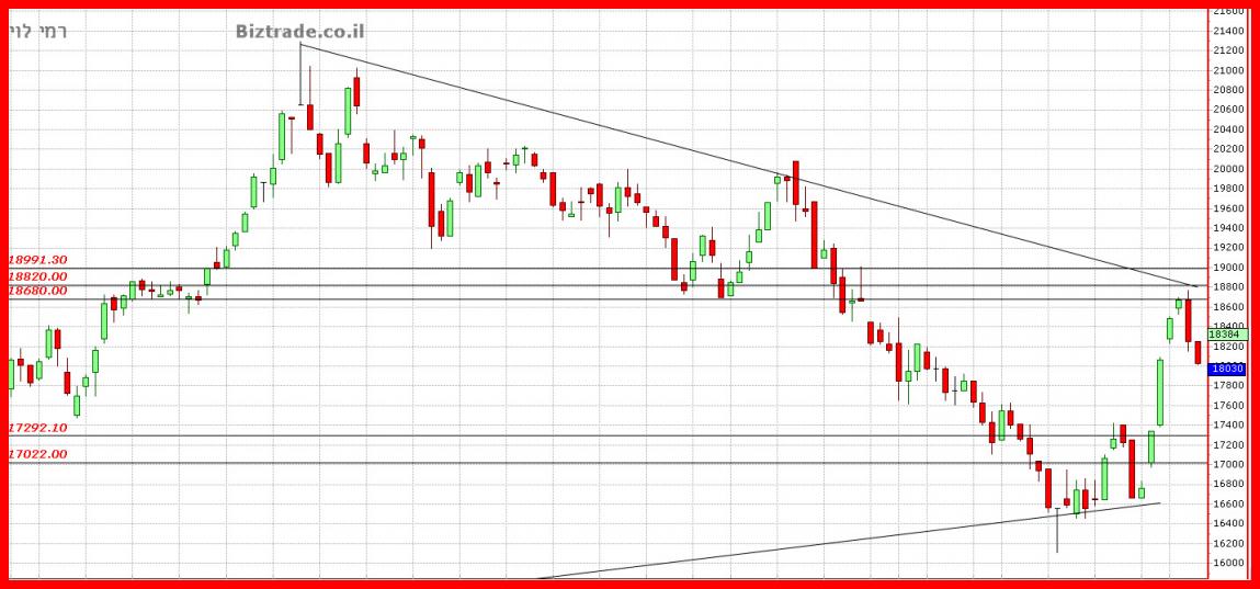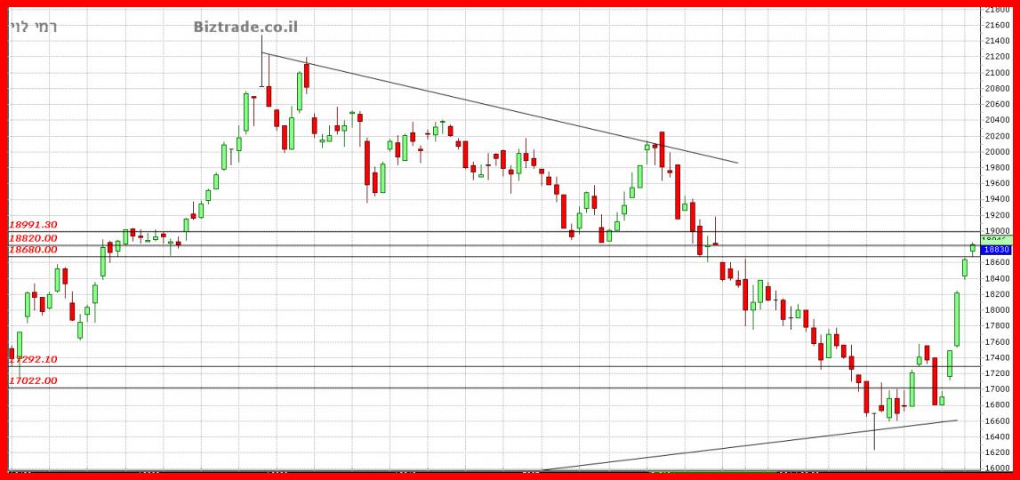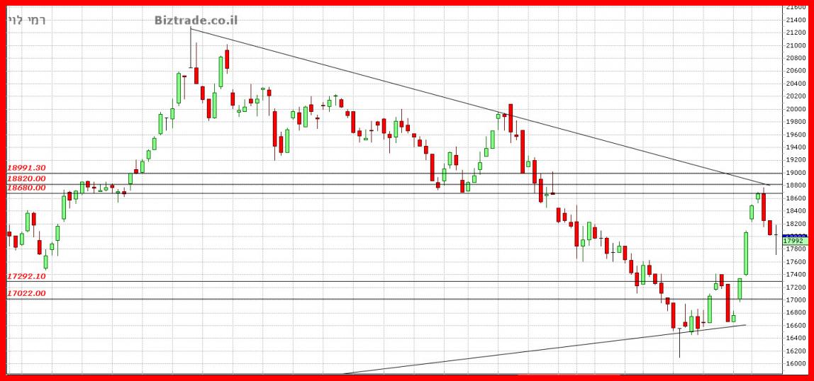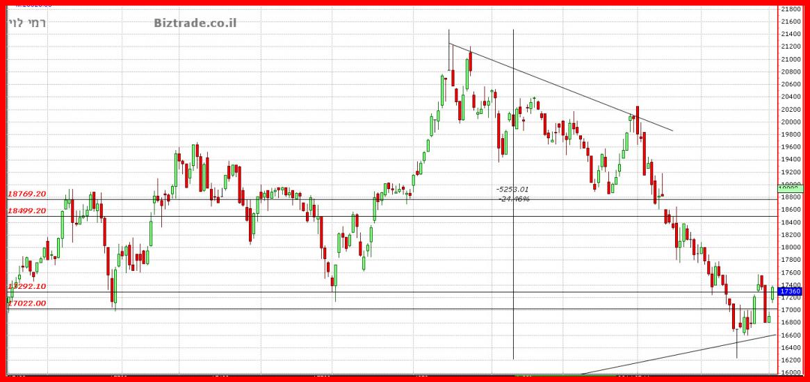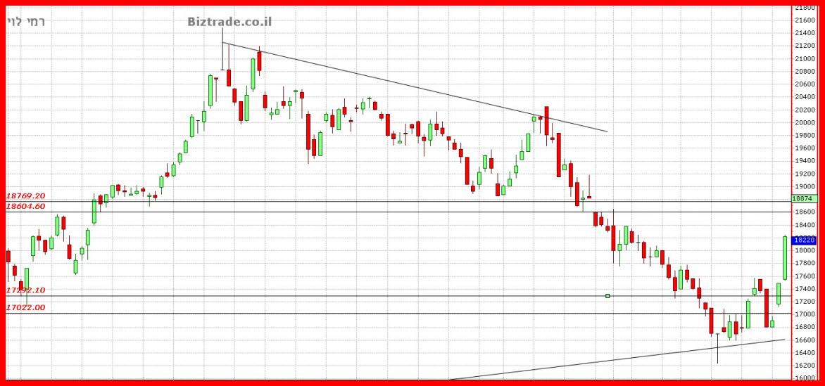 כול סגירה מעל ה 17000 , היום , יוצר מצב טכני חיובי להמשכיות מעלה.