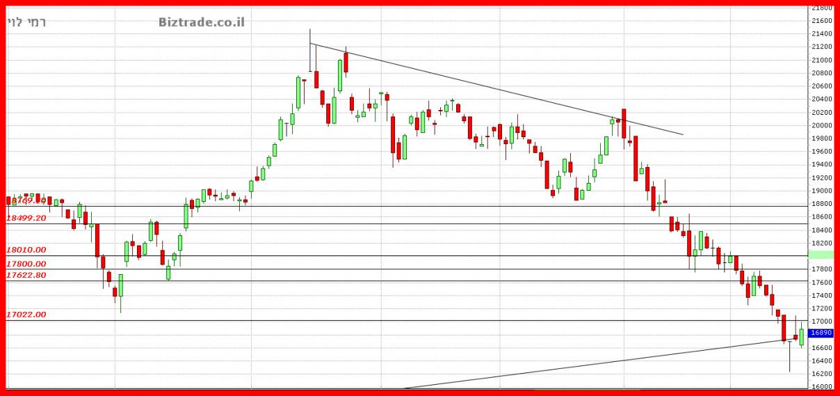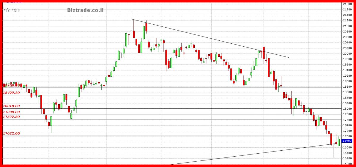 ורק פריצת ה 17000 , כנחישות של הקונים תוציא אותם מהאזור ( היא כבר ירדה לנמוך יומי בינתיים ל 16780 !!!!,)