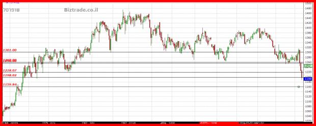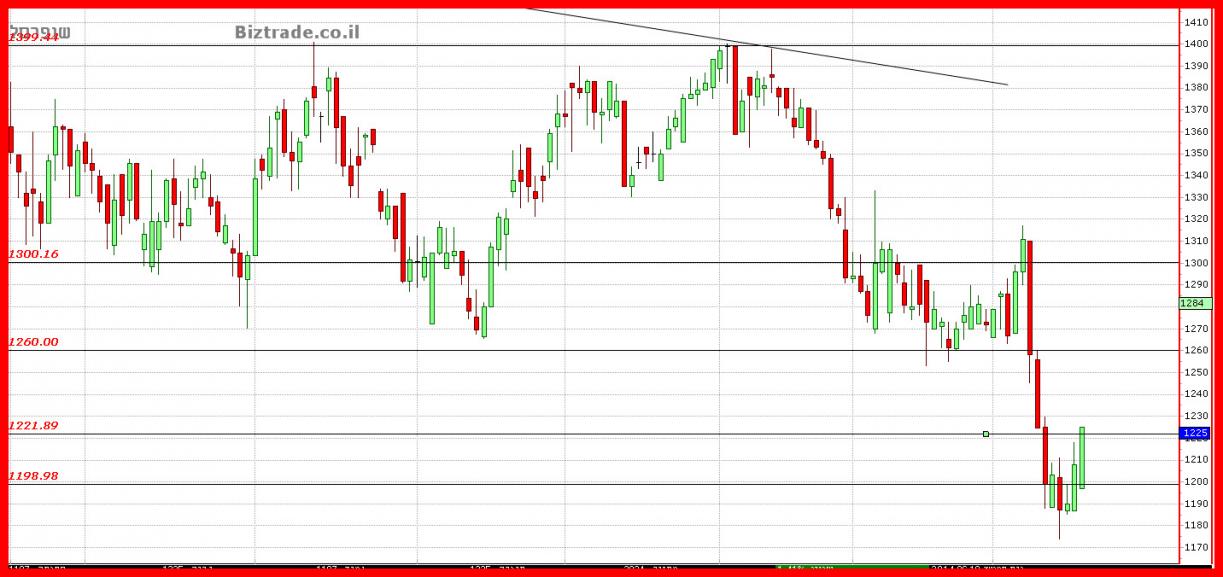 המחיר קיבל ירידה נוספת ל 1174, ושם הקונים התעוררו והחלו את כניסתם . כאשר אחרי יומיים ה 1200 נפרץ והיום ה 1220, עם סיום ב 1225.
