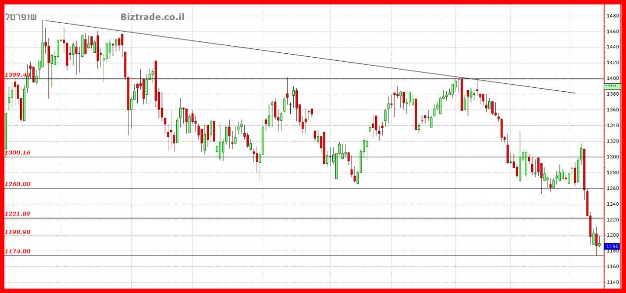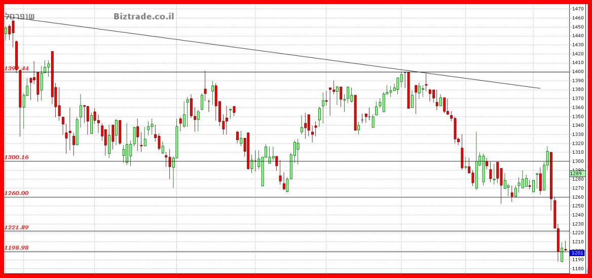 המחיר הפתיע גם היום בעצמת הירידות כאשר נגד הסיכויים הטכניים לשבירת ה 1200 , הוא עש כך.!