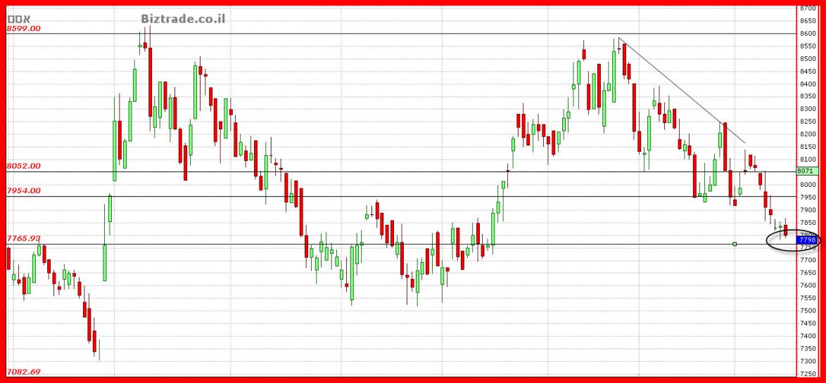 ירידה ל 7800 , ושם צריך לבחון את כוחות הקונים .