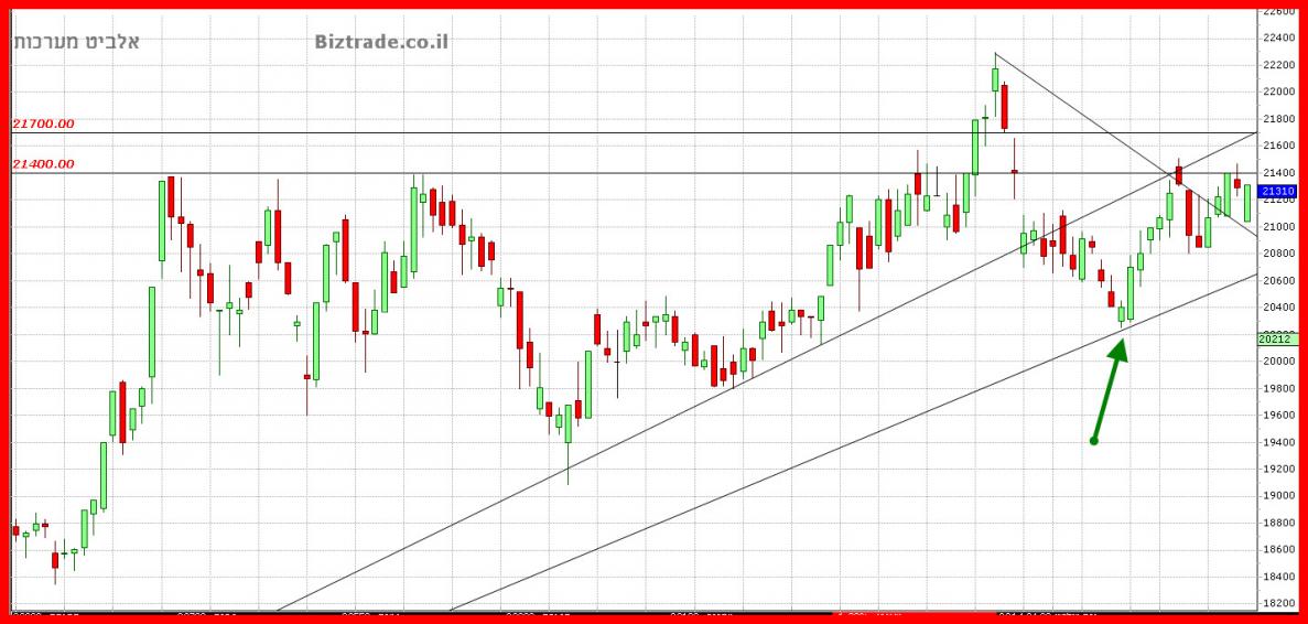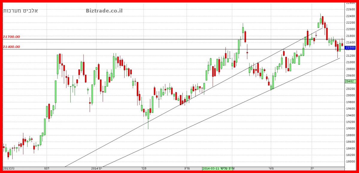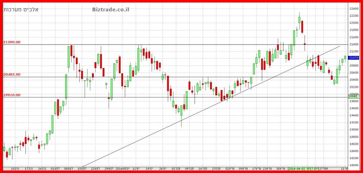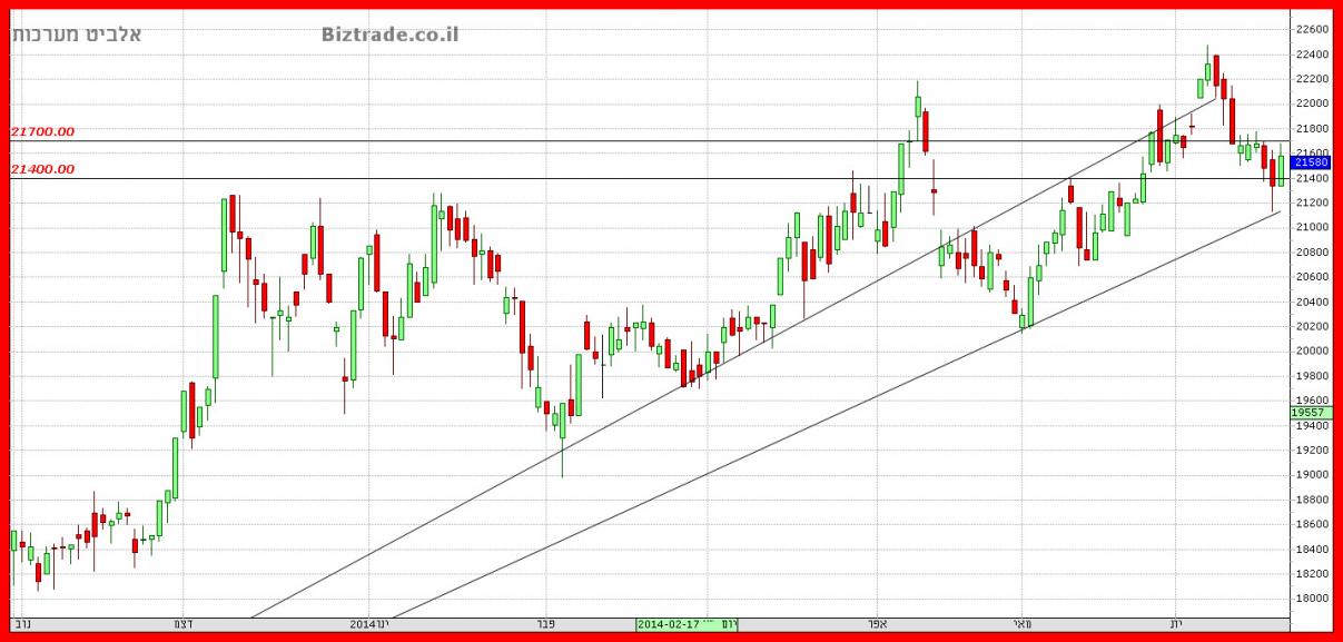 הטכני עומד כרגע , להזכירכם , על 21400 , וכאשר המחיר יגיע לאזור ניתן יהיה לבדוק , האם ישנה יכול המשכיות מעלה או לא.