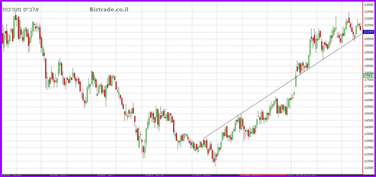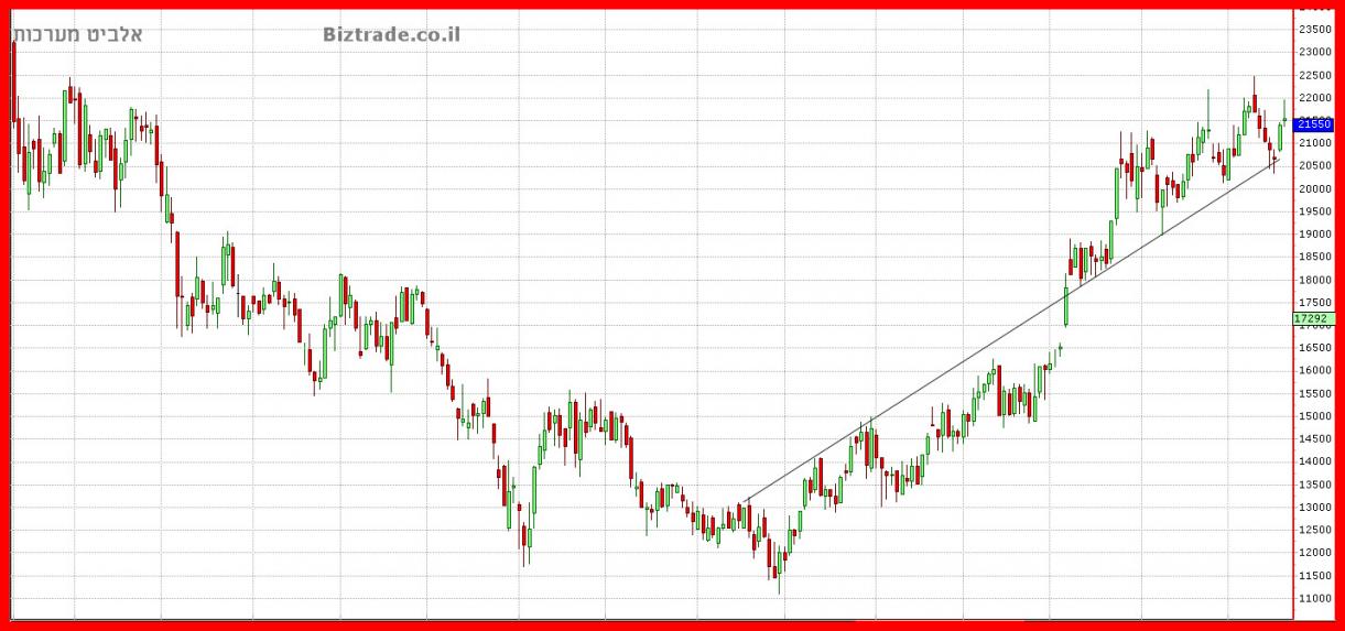 גרף שבועי עם אותו קו מגמה עולה