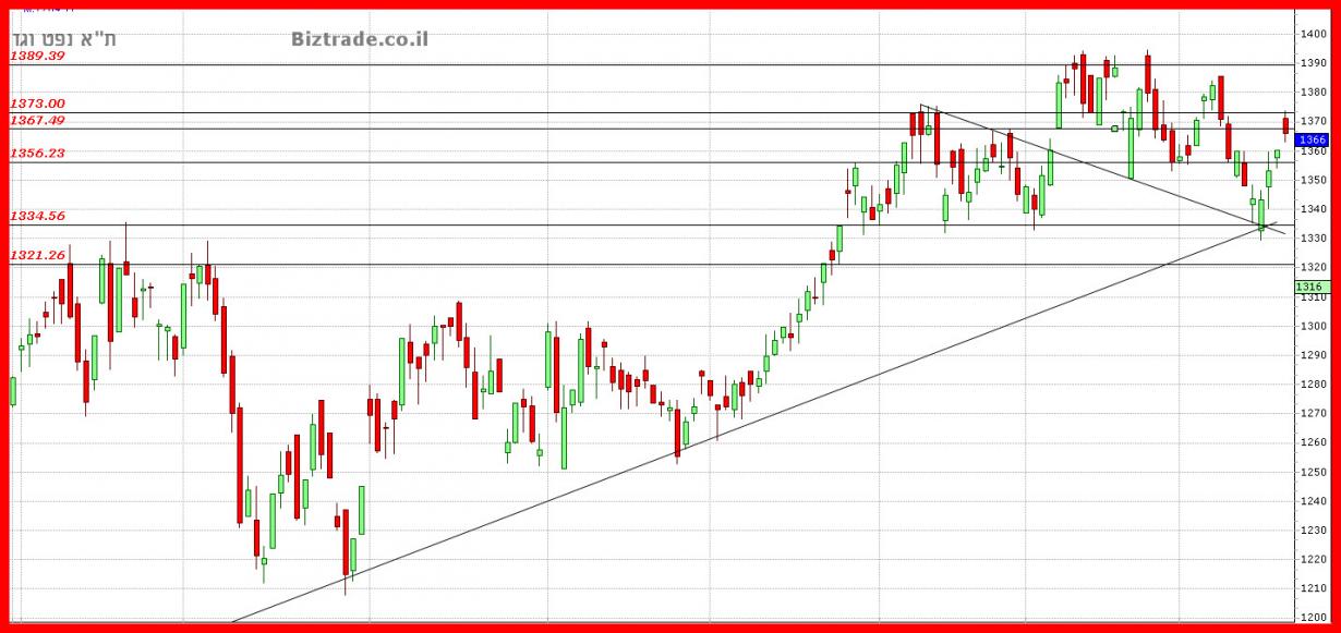 היה מאוד נכון אתמול לבחור בין הנתונים הטכניים , להמשך ירידות היום כאשר המחיר יורד מכלל הקווים לתמיכה האופקית ב 1330 ומשם שוב , בדומה לאתמול המחיר נתמך וקונים נכנסים !.