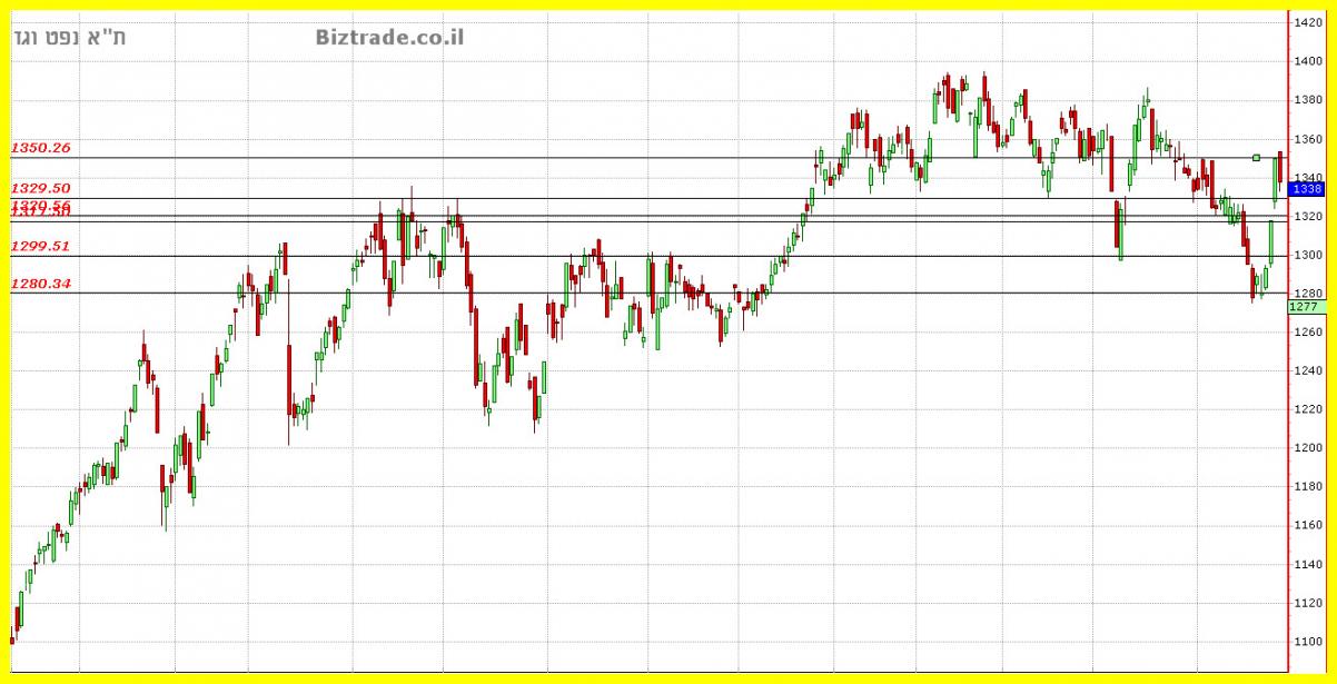 למרות ניסיון עלייה ביומיים האחרונים המוכרים עדיין על העליונה כאשר את קו ה 1330 הם לא נתנו לפרוץ.