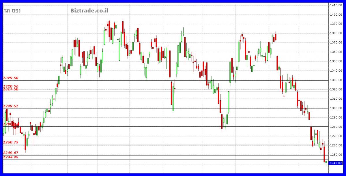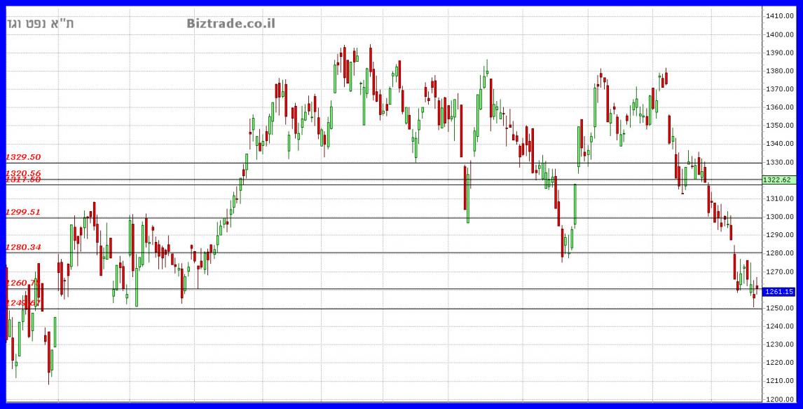 בשל , בשל , אבל את התמיכות הוא לא שומר, והיום המחיר שובר גם את ה 1260 שרק פרץ בבוקר וגם את ה 1250 שהיה יעד להגעה.