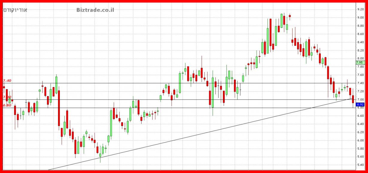 הקונים מראים אתמול את נחישותם וכבר פרצו את קו ה 7$ , מה שנותן יעד טכני מיידי ל 7.4$,